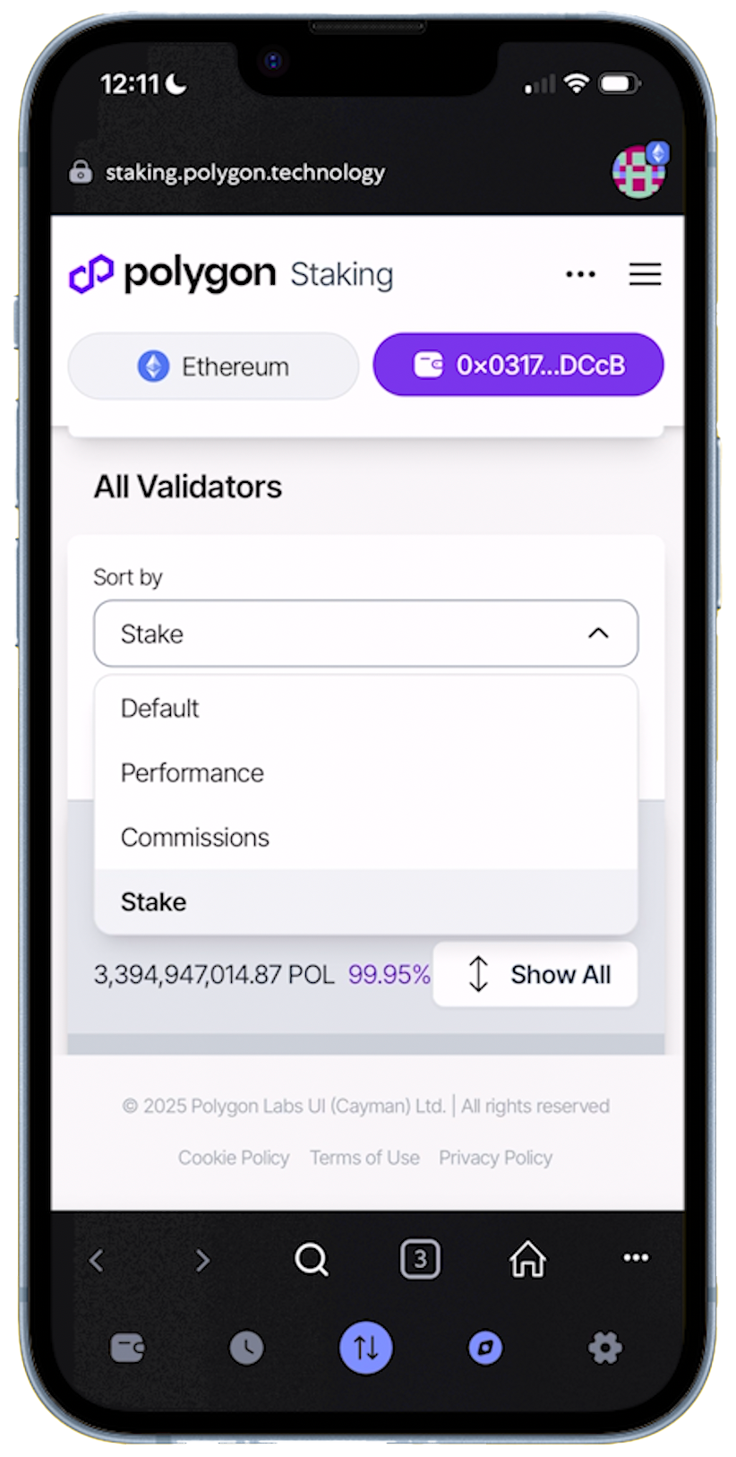 Navigate to the Polygon Staking Hub, connect your wallet, and view the list of available validators. Over 100 validators are currently active.