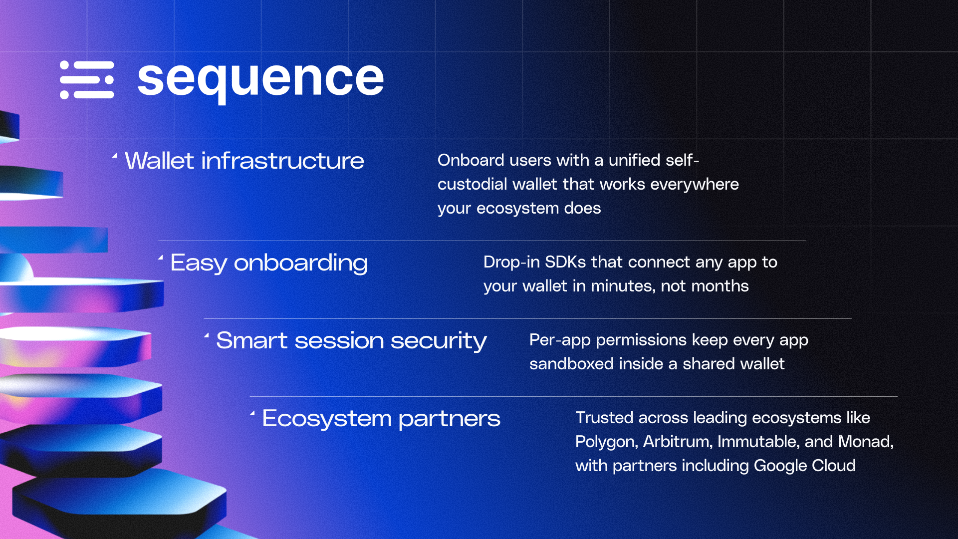 Sequence and Trails are already used by global platforms and enterprises. Backed by Brevan Howard Digital, Initialized Capital, Coinbase, Polychain, Consensys, Take-Two Interactive, Ubisoft, and Bitkraft, Sequence’s infrastructure is already used across major blockchain ecosystems including Polygon, Immutable, Monad, Arbitrum, Magic Eden, and emerging networks such as SKALE, Etherlink, ApeChain, Soneium, and Somnia.